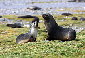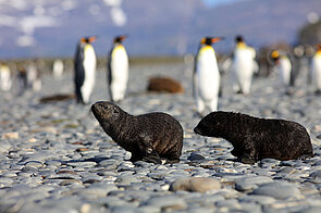 Uns zieht es wegen der riesigen Pinguinkolonien nach Südgeorgien. Ein paar Millionen sollen auf der Insel leben, vor allem Königspinguine. Noch dazu tausende Robben, Seevögel und See-Elefanten. Wir sind alle ziemlich aufgeregt, als das Schlauchboot noch vor dem Frühstück in Richtung Südgeorgien ablegt. Gleich werden wir eine neue Welt betreten. Eine Welt ohne Menschen. Unberührt.