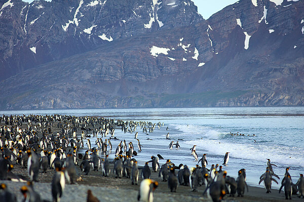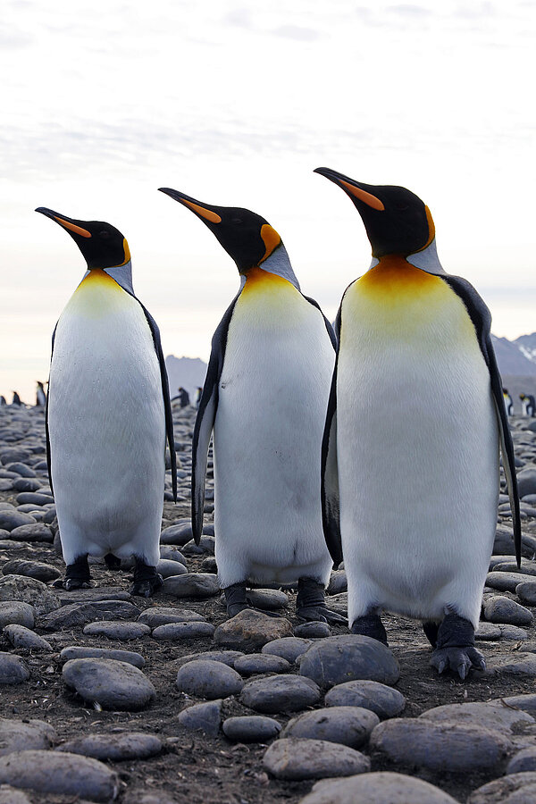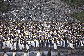 Richard Klemm, Kameramann: „Wir sitzen im Schlauchboot vom Schiff zur Insel. Kurz vor dem Anlanden, nicht mal mehr zehn Meter bis zum Strand, sehe ich zum ersten Mal das unglaubliche Gewusel dort. Dann stoßen wir auf Grund, ich steige aus. Mit ein paar Schritten stehe ich plötzlich mitten in einer anderen Spezies. Ich fühle mich, wie auf einem neuen Planeten. Verstärkt wird dieses Gefühl dadurch, dass die Königspinguine alle gleich aussehen. Hundertfach das gleiche Gesicht nebeneinander. Ich fühle mich wie in einer Klon-Kolonie. Überwältigend.“