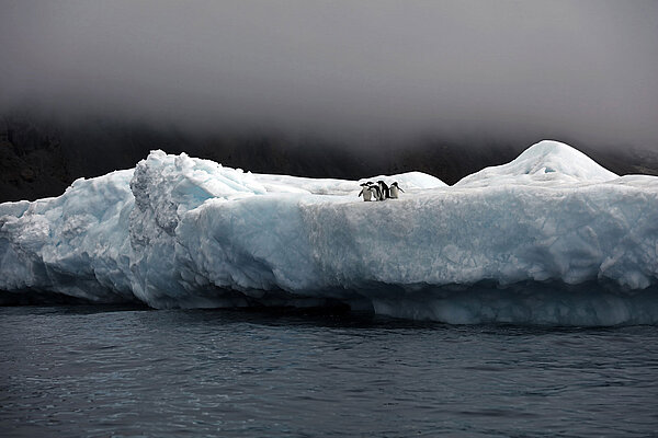 Wir schippern durch die Bransfieldstraße, vorbei an Elephant Island, einer vorgelagerten Insel der Antarktis. Neben mir Mathias und Richard, das asisi-Team. Gemeinsam mit Yadegar Asisi sind wir auf dem Weg in die Antarktis. Mit dem Schiff MS Hanseatic fahren wir von Ushuaia in Südargentinien über die Falklandinseln und Südgeorgien zum antarktischen Festland. Die Reise entscheidet darüber, ob Asisi der Eiswelt am Südpol ein Panorama widmet.