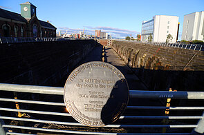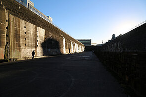 Um diese „sky is the limit“-Haltung für das Publikum emotional zu übersetzen, braucht die Ausstellung Installationen, die eine entsprechende Kraft besitzen. Im Zuge der Recherchezuarbeit für Yadegar Asisi reisten Creative Director Mathias Thiel und Artworker Kaj Knüpfer unter anderem nach Belfast, wo 1911 im größten Trockendock der Welt Arbeiten an der Titanic durchgeführt wurden.