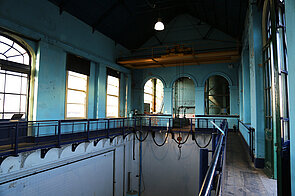 Zahlreiche historische Fotoaufnahmen sollen die damalige Entwicklung veranschaulichen, als der Mensch immer größere Maschinen herstellte und zwischen Tonnen schweren Hydraulikpressen und Meter hohen Schiffsschrauben selbst immer kleiner wurde.