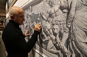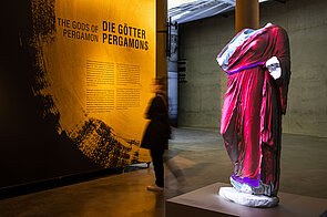 In the exhibition tour, 80 ancient originals such as the famous "Beautiful Head", parts of the Pergamon Altar Frieze, the "Prometheus Group" and many other Hellenistic masterpieces are staged in an artistic play of colour and light. Complemented by paintings and studies by Yadegar Asisi, the exhibition conveys a sense of Pergamene society during the Roman Empire. The artistic staging, motivated by the content, allows us to experience ancient works of art in a new way, while at the same time presenting the results of recent archaeological research.