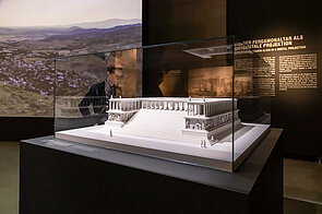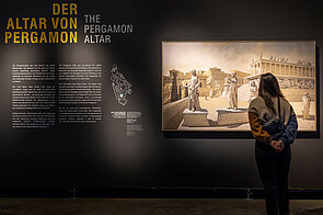 PERGAMON - the glorious Hellenistic metropolis which, like no other, combined the achievements of its time in architecture, art and culture: In a unique collaboration between art and science, Yadegar Asisi's 360° panorama brings the ancient city and its inhabitants to life. The walk-through work offers a view of the city as if you were standing in the centre of Pergamon in 129 AD, looking out over the landscape around the Acropolis. Highlights of reproductions and original antiquities from the Collection of Classical Antiquities of the National Museums in Berlin interact with the panorama to bring Greco-Roman antiquity to life.