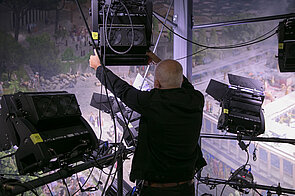 From the pilot project EVEREST onwards, Yadegar Asisi is collaborating with the well-known composer and pianist Eric Babak. In close collaboration between the two artists, the impressive soundscape of the panoramas is harmonized directly in the exhibition space with the lighting patterns to create an atmospheric overall installation. Depending on the project, the productions use, among other things, large orchestras and choirs, but also minimalist synthesizer sounds in combination with everyday noises to make the special atmosphere of the themes audible and tangible in the constant change of panorama sequences.